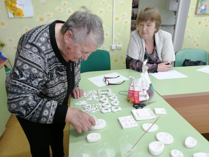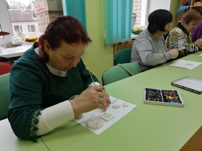 На базе Отделения дневного пребывания «Комплексного центра социального обслуживания населения Краснобаковского района» для людей с ментальными нарушениями и обслуживаемыми в ОДП прошел мастер – класс «Я могу творить красоту» по изготовлению сувениров из гипса. Под руководством инструктора творческой мастерской «Керамика» Алимовой С.В. обслуживаемые изготовили своими руками магниты, рамки для фотографий, раскрасили их яркими красками, готовые изделия стали хорошим подарком для участников мастер-класса.
