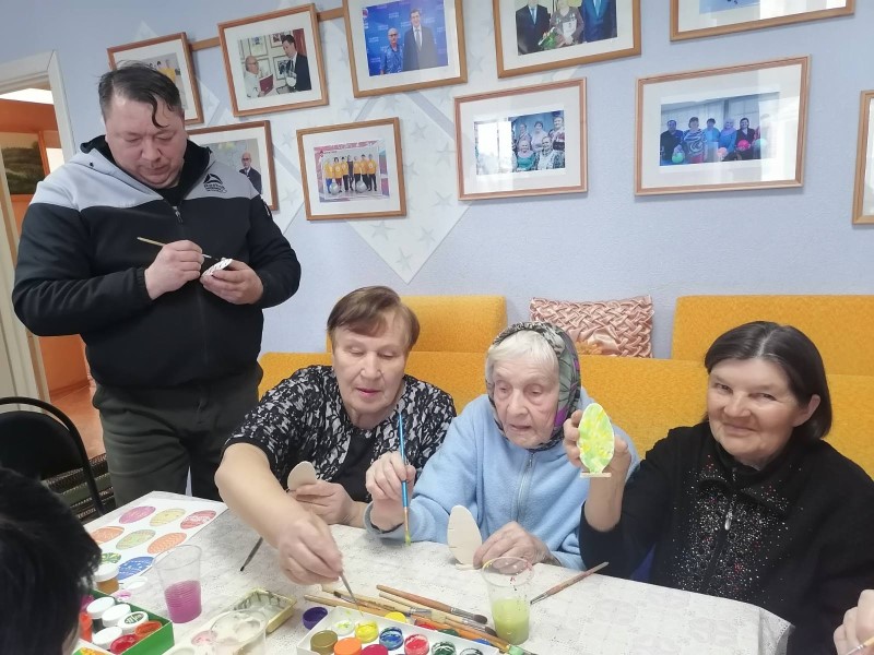 В последнюю предпасхальную неделю нужно успеть очень многое: испечь куличи, покрасить яйца, убрать и украсить свой дом. И, конечно, приготовить замечательные подарки, сделанные своими руками. В отделении «Специализированный жилой дом для граждан пожилого возраста и инвалидов» прошел мастер-класс «Пасхальный сувенир» по изготовлению пасхальных сувениров своими руками. Участники мероприятия совместно с наставником Поповым М.В. - сотрудником ЦДТ, изготовили пасхальные сувениры. Мероприятие подарило пожилым людям заряд позитива и отличного настроения.