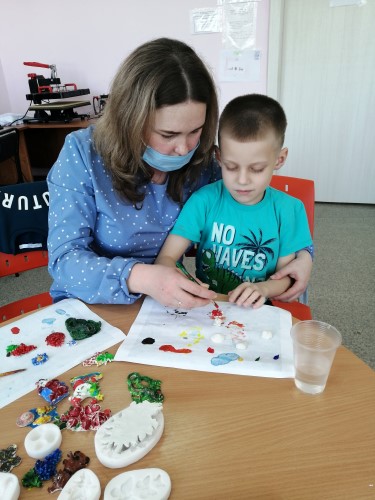 Инструктор творческой мастерской «Керамика» Алимовой С.В. провела для детей с ментальными нарушениями мастер – класс «Цветная керамика» по росписи гипсовых магнитов. Собачки, белочки, зайки, машинки превращались в красочные, яркие магнитики, которыми юные художники, наверняка, украсят свои холодильники в память о замечательном мастер-классе.