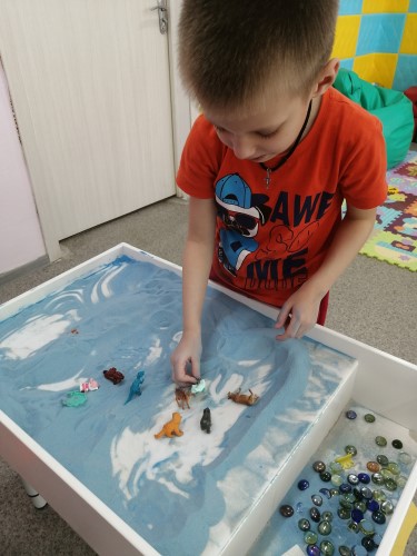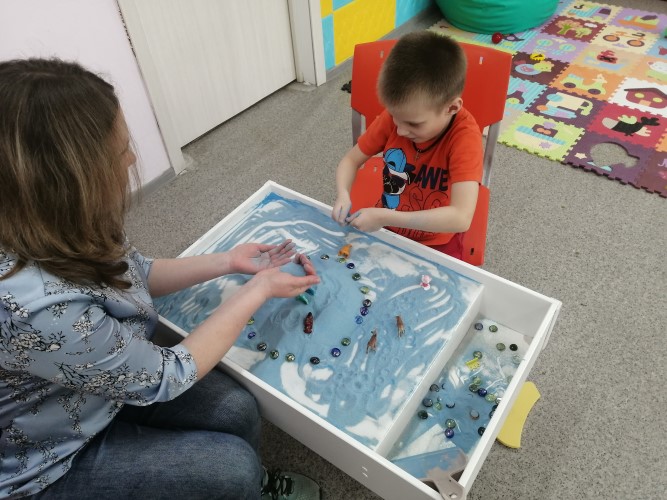В рамках месячника распространения информации об аутизме психолог Алимова С.В пригласила детей с РАС в волшебный песочный мир, и показала много интересных игр, с помощью которых дети окунулись в сказку. Взаимодействие с песком, как и всякая игра, способствует моторному и когнитивному развитию ребенка. Игры с песком – это очень приятное и творческое занятие, практически всегда связанное с созиданием чего-то. Взаимодействие с песком само по себе обладает успокаивающим эффектом, способствует оптимизации и стабилизации эмоционального состояния.