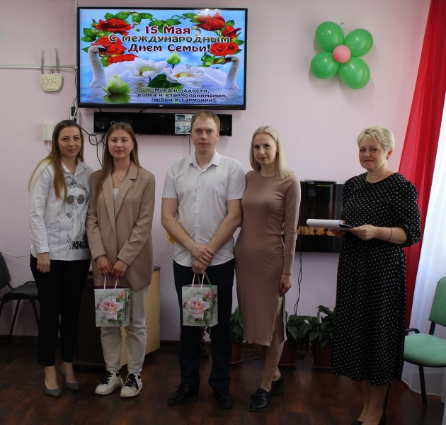 В преддверии Международного дня семьи ГБУ «Комплексный центр социального обслуживания населения Краснобаковского муниципального округа» приветствовал семьи, которые прожили вместе продолжительное время, и молодые семьи, не имеющие стажа совместной жизни. Гостей приветствовали специалисты ЗАГСа, работники и воспитанники детского сада «Сказка» р.п. Красные Баки. Гости остались очень довольны выступлением маленьких артистов и воспитателей, ну и, конечно, вниманием и подарками.