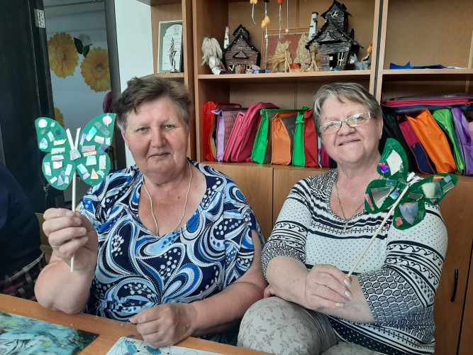 Обслуживаемые Отделения дневного пребывания побывали в Центре детского творчества на мастер - классе, который им провела Карасева С.В. Вместе с преподавателем наши подопечные изготовили отпугивателей птиц из бросового материала — старых дисков и пластиковых папок для тетрадей.