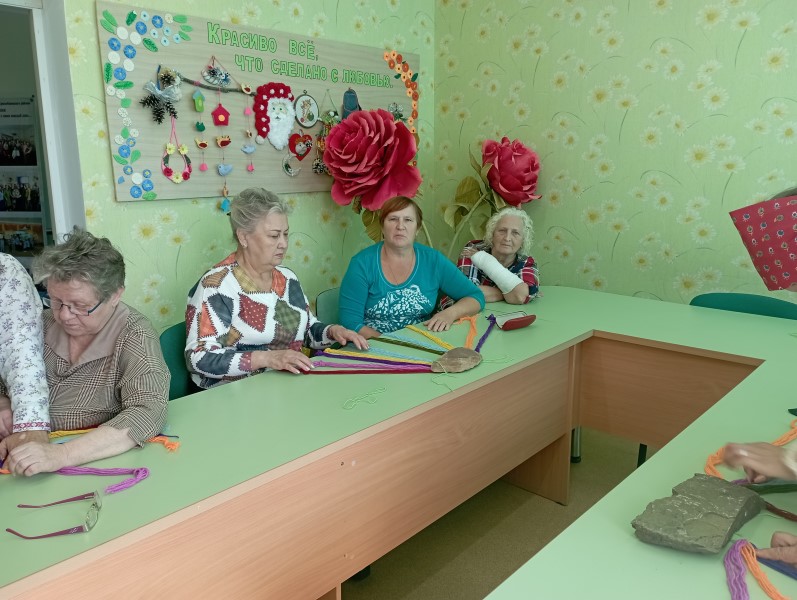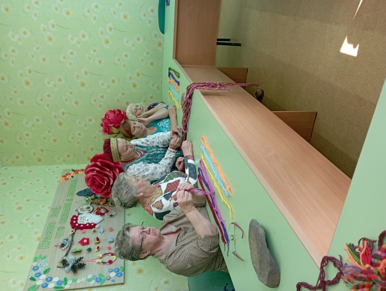 В гостях у обслуживаемых Отделения дневного пребывания побывали специалисты из РЦД и К с познавательной интерактивной беседой по русскому народному костюму, а также созданию его ярких элементов. Занятие началось с обсуждения темы девичьего головного убора с наглядной демонстрацией плетения русской косы, а закончилось мастер-классом по плетению пояса кушака, который является неотъемлемой частью народного костюма. В ходе творческого процесса обслуживаемые вместе со специалистами вспомнили старину, поговорили о традициях, а также прикинули, как яркий поясок можно превратить в стильный элемент современного женского гардероба.