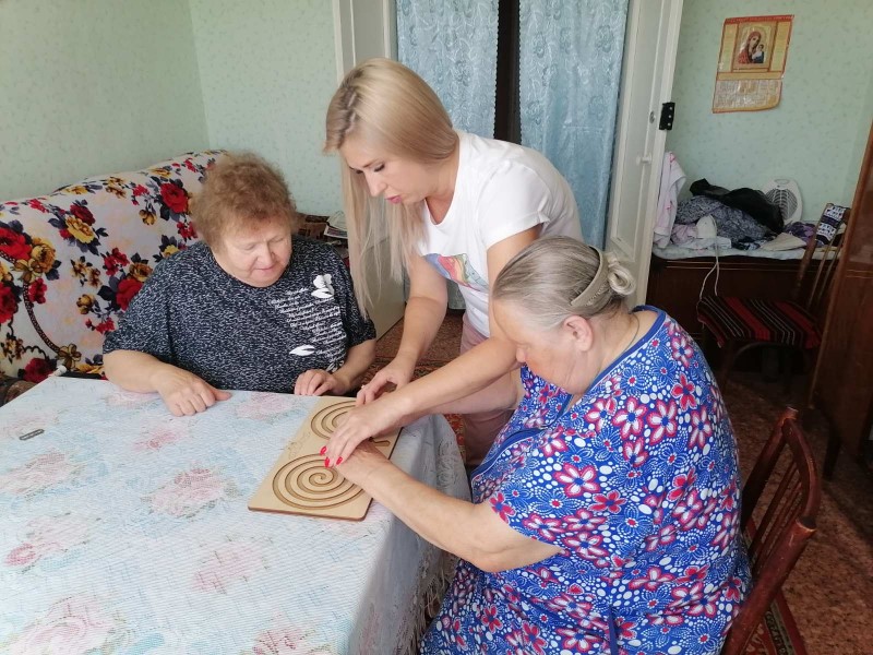 В отделении «Специализированный жилой дом для граждан пожилого возраста и инвалидов» продолжаются занятия с межполушарными лабиринтами в рамках программы «Ключи к здоровью».