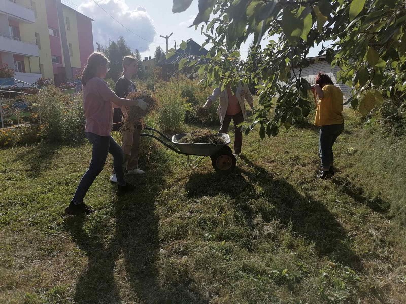 В отделении "Специализированный жилой дом для граждан пожилого возраста и инвалидов" продолжается работа по благоустройству территории. Волонтерский отряд «Лучики добра», состоящий из педагогов и воспитанников Краснобаковского детского дома совместно с жильцами Спецжилдома приложили усилия для того, чтобы территория вокруг Спецжилдома засияла чистотой. Убрали сухую траву, подмели тротуар, поправили цветники. Совместная работа взрослых и детей способствовала сплочению коллектива. Ребята проявили свои лучшие качества и трудовые умения, прекрасно взаимодействовали со старшим поколением.