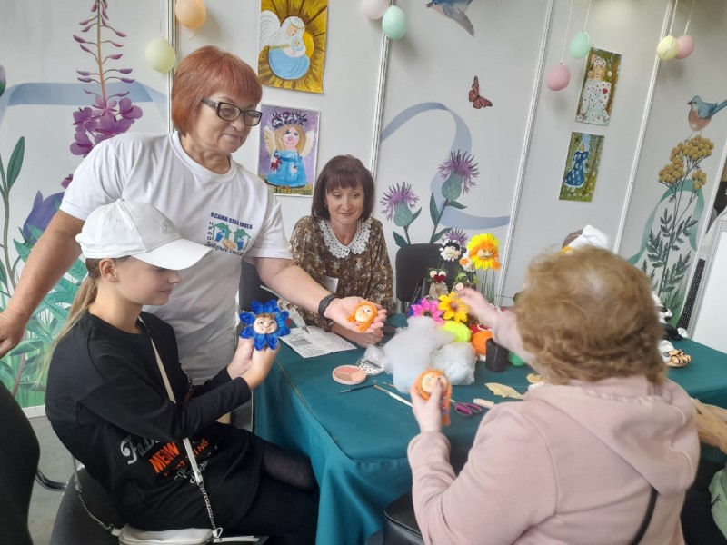 Специалисты Науменко Т.В. и Разина А.С. провели мастер-класс по изготовлению поделок в чулочной технике "Куклы-цветы», в котором принимали участие и дети, и граждане старшего поколения. Спасибо организаторам за такое замечательное мероприятие, которое объединяет и дает возможность всем желающим поучаствовать в мастер-классе.