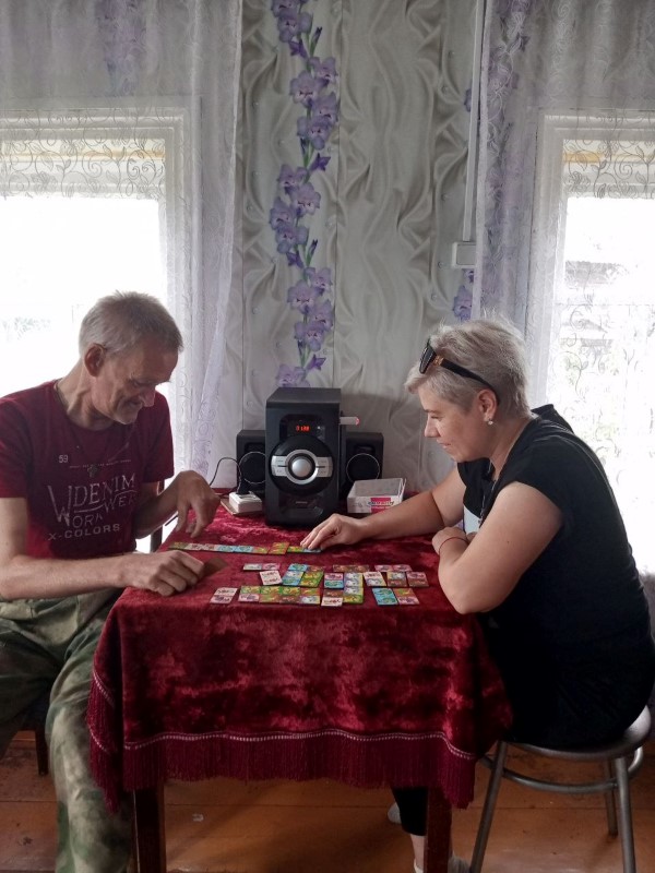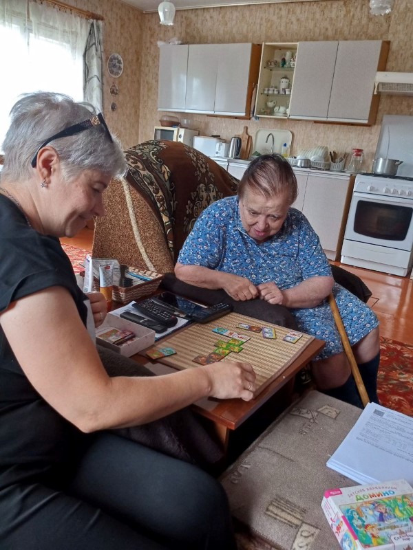 Заведующая отделением социально-бытового обслуживания на дому с. Носовая Цветова С.Л. провела занятия с обслуживаемыми. Тематика занятия - развитие памяти и мелкой моторики рук: "Домино для развития памяти "Герои из сказки", "Пазлы".