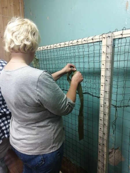 Сотрудники ГБУ КЦСОН Краснобаковского муниципального округа провели мастер класс по плетению маскировочных сетей в п. Шеманиха.