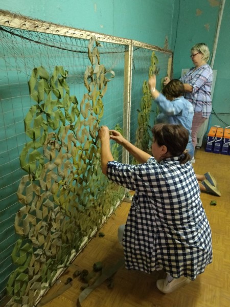 Социальные работники с. Кириллово и п. Шеманиха принимают активное участие в изготовлении маскировочных сетей для СВО