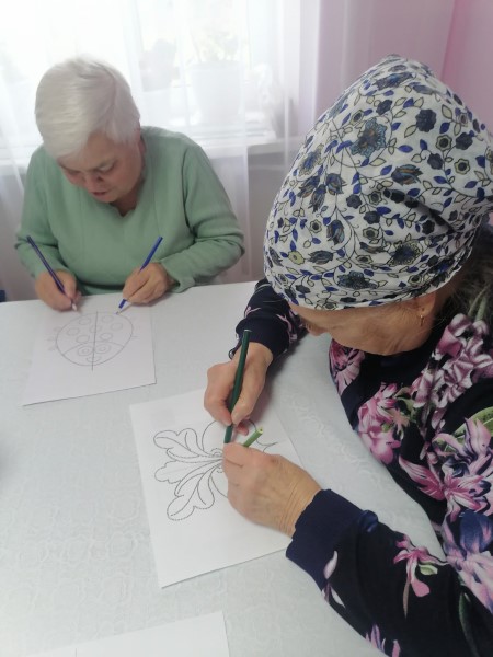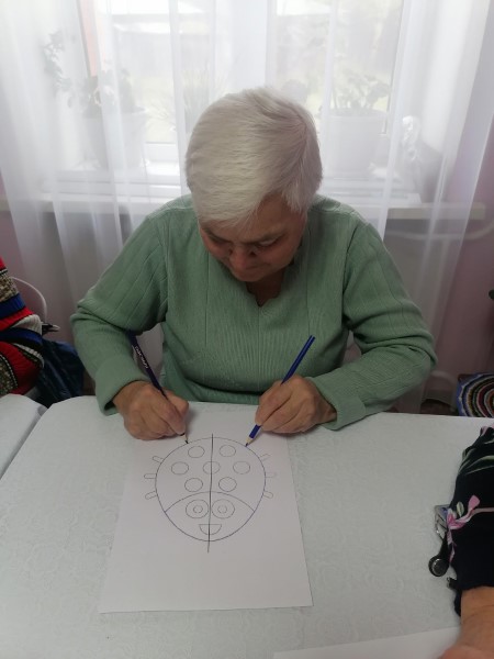 С большим удовольствием жители «серебряного возраста» выполняют упражнения на синхронное рисование. Взяв в обе руки по карандашу, проживающие одновременно рисуют разные фигуры, что приводит к активизации деятельности мозга.