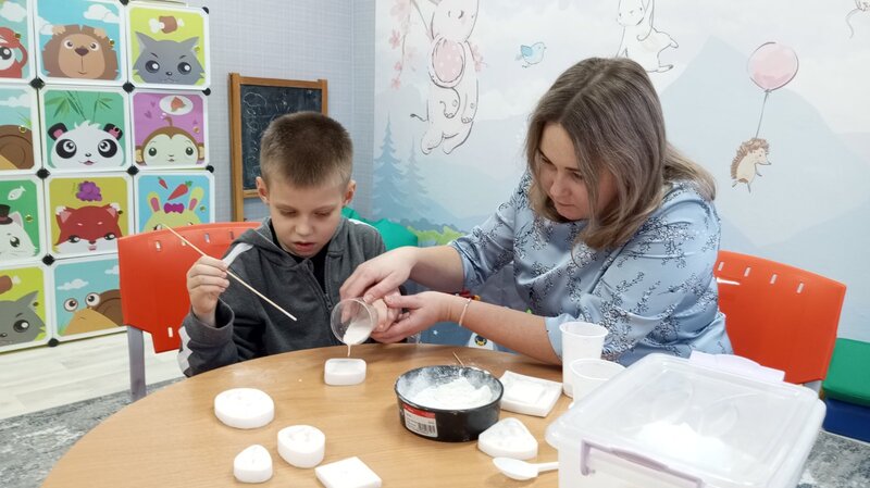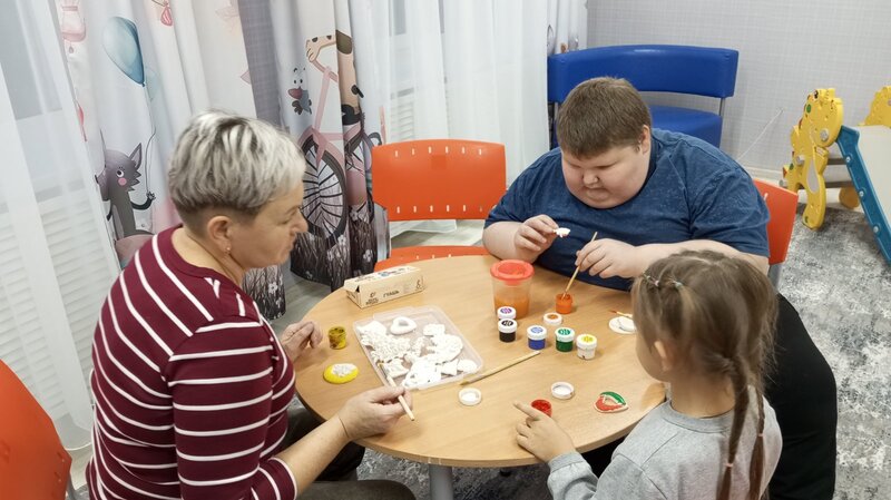 В рамках празднования Дня матери для обслуживаемых Отделения дневного пребывания, а также людей (детей) с расстройствами аутистического спектра и другими ментальными нарушениями, был проведен мастер-класс по изготовлению сувениров из гипса. Под руководством инструктора творческой мастерской «Керамика» Алимовой С.В., участники мероприятия ознакомились с технологией работы с гипсом, овладели навыками заливки и извлечения его из форм. В заключение занятия все присутствующие украсили созданные ими гипсовые фигурки росписью.