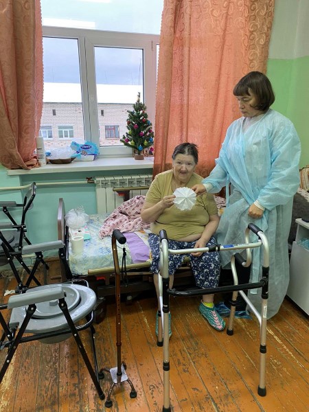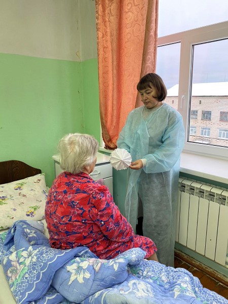 Дарить добро, праздничное настроение, заботу и внимание людям преклонного возраста в преддверии Новогодних праздников продолжает благотворительная акция « Мы дарим Вам тепло своей души». Обслуживаемые дневного отделения ГБУ КЦСОН Краснобаковского муниципального округа приняли участие в благотворительной акции. Они изготовили нарядные новогодние снежинки, которые специалист отделения срочного социального обслуживания передала пациентам отделения сестринского ухода Краснобаковской ЦРБ.