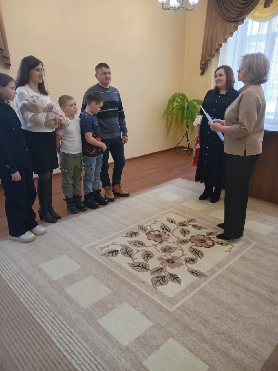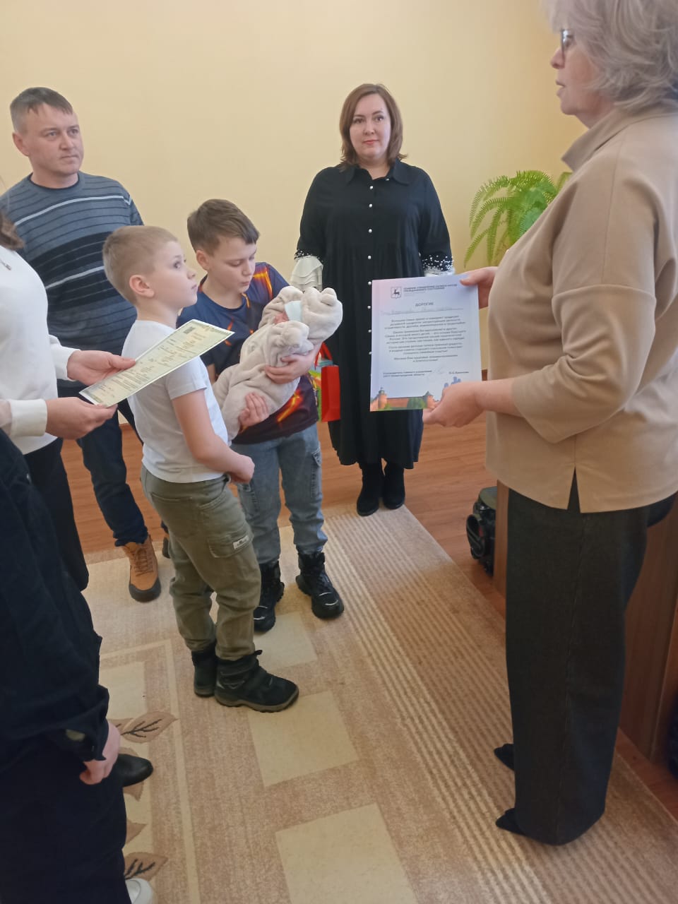 На торжественной церемонии семья присутствовала в полном составе: родители Сергей и Евгения, дети – Иван , Анна, Даниил, и новорожденный Александр.
