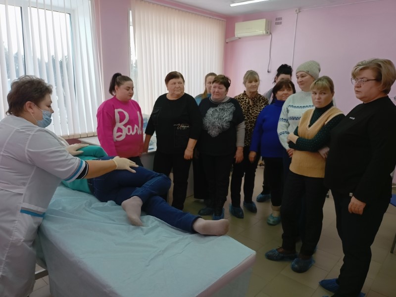 В ГБУ «КЦСОН Краснобаковского муниципального округа» было проведено обучающее занятие для помощников по уходу в «Школе ухода» в рамках системы долговременного ухода, на котором медицинская сестра Чиркова Г.В. рассказала и продемонстрировала принципы ухода за малоподвижными больными.