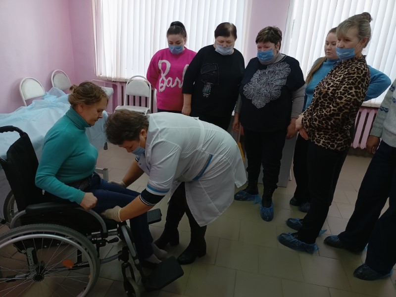 Помощники по уходу ознакомились с техническими средствами реабилитации, которые применяются в уходе за маломобильными гражданами, и с правилами их использования.