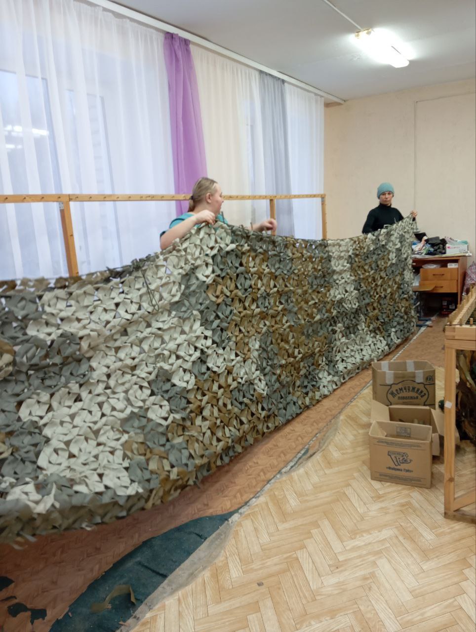 Социальные работники с. Зубилиха и с. Кириллово продолжают плести маскировочные сети для отправки в зону действия СВО. В Зубилихе готова к отправке еще одна сеть.