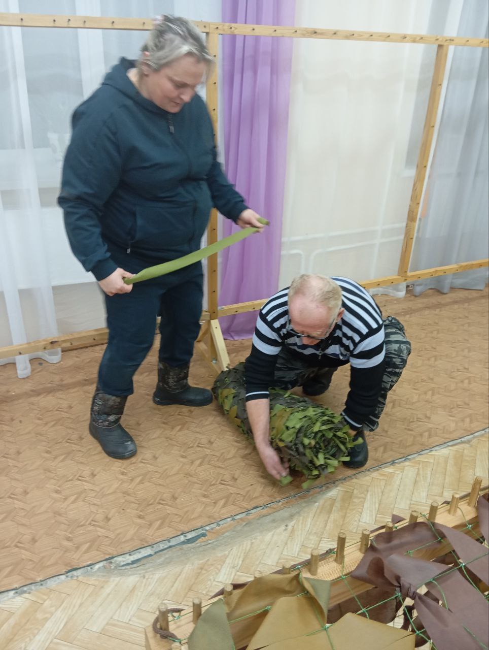 В с. Зубилиха у социальных работников отделения социального обслуживания на дому ГБУ "КЦСОН Краснобаковского муниципального округа" готова девятая маскировочная сеть для СВО