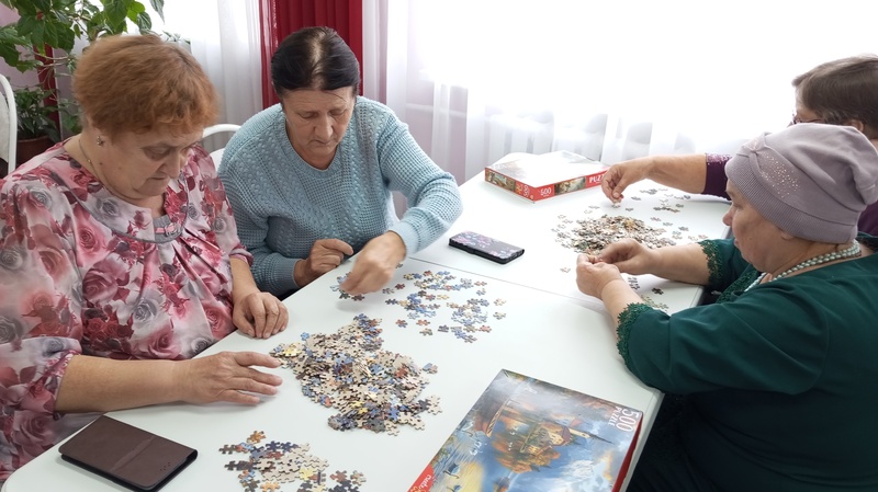 В отделении дневного пребывания ГБУ "КЦСОН Краснобаковского муниципального округа" прошёл час игры «Пазломания».