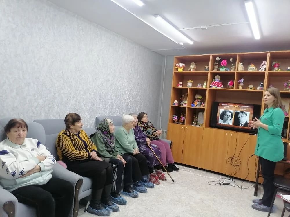 В отделении «Специализированный жилой дом для граждан пожилого возраста и инвалидов» ГБУ «КЦСОН Краснобаковского муниципального округа» состоялся библиотечный час на тему "Литературный портрет М.А.Булгаков «За мной ,читатель...»".