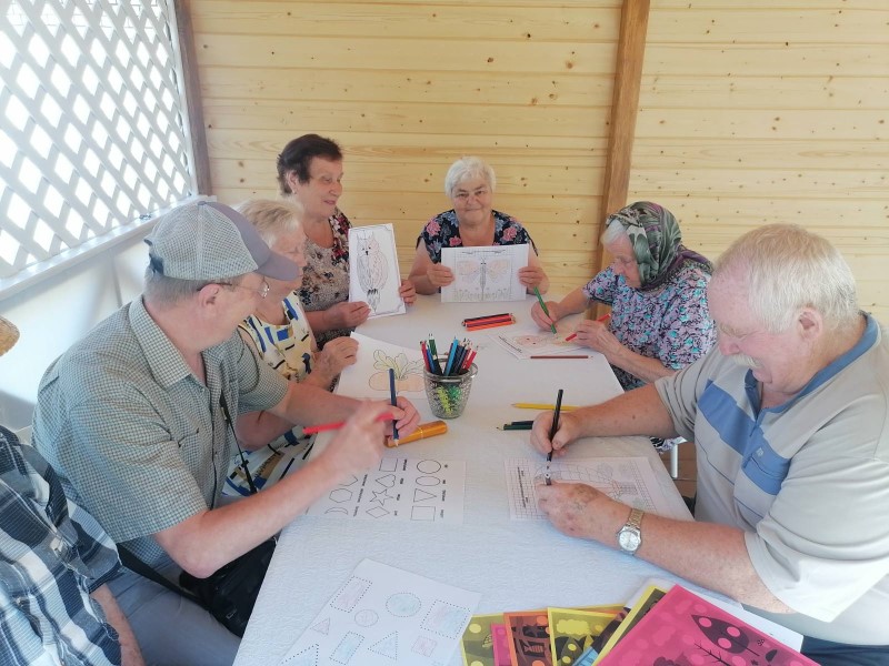 В отделении «Специализированный жилой дом для граждан пожилого возраста и инвалидов» для пожилых граждан проводятся занятия, направленные на развитие межполушарного взаимодействия посредством рисования двумя руками в рамках программы «Ключи к здоровью». Одновременные движения обеих рук активируют сразу оба полушария головного мозга. Создаются новые нейронные связи, а значит, процессы анализа и синтеза информации проходят быстрее. Как следствие, повышается умственная активность и работоспособность. Рисование двумя руками – интереснейший творческий опыт, который можно попробовать в любом возрасте. Положительный эффект от таких упражнений заметен в повышении продуктивности и улучшении самочувствия у пожилых людей.