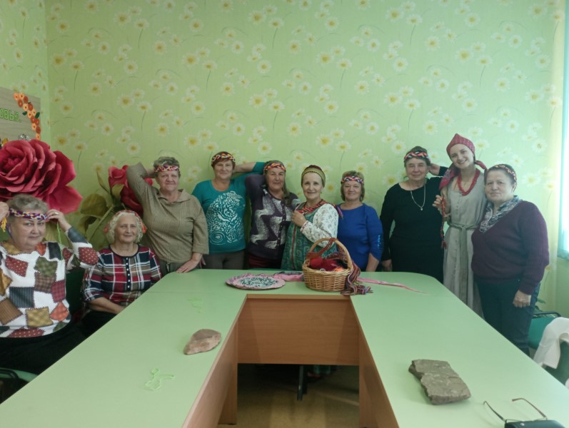 В гостях у обслуживаемых Отделения дневного пребывания побывали специалисты из РЦД и К с познавательной интерактивной беседой по русскому народному костюму, а также созданию его ярких элементов. Занятие началось с обсуждения темы девичьего головного убора с наглядной демонстрацией плетения русской косы, а закончилось мастер-классом по плетению пояса кушака, который является неотъемлемой частью народного костюма. В ходе творческого процесса обслуживаемые вместе со специалистами вспомнили старину, поговорили о традициях, а также прикинули, как яркий поясок можно превратить в стильный элемент современного женского гардероба.