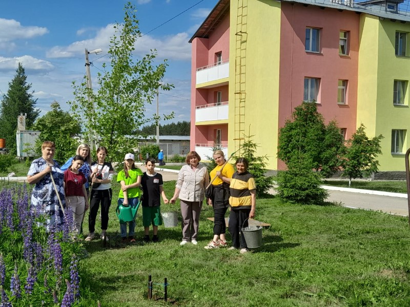 Волонтерский отряд Краснобаковского детского дома "Лучики добра" посетил жителей Специализированного жилого дома для граждан пожилого возраста и инвалидов с акцией по благоустройству территории "Стало везде чисто и красиво".