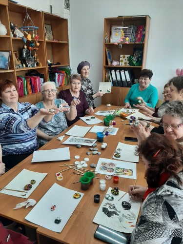 Обслуживаемые Отделения дневного пребывания ГБУ "КЦСОН Краснобаковского района" посетили Центр детского творчества. Методист Карасева Светлана Викторовна провела с ними мастер-класс "Роспись камней", наши обслуживаемые рисовали акриловыми красками на камнях, привезенных с юга. У них получились чудесные украшения для сада в виде пчелок и бабочек-коробочек. Смотрится просто прекрасно! И это такое интересное занятие! Они получили новые умения и зарядились хорошим настроением!