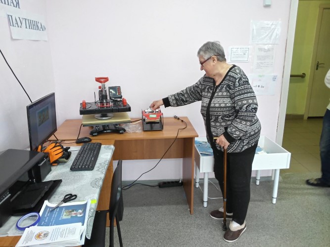 На базе Комплексного центра социального обслуживания населения в интеграционной мастерской "Радужная паутинка" для обслуживаемых Отделения дневного пребывания и людей с ментальными нарушениями прошел мастер-класс по нанесению печатного рисунка на ткань с помощью полиграфического оборудования. Обслуживаемые ознакомились с техникой нанесения рисунка и изготовили яркие футболки с логотипом ГБУ «КЦСОН Краснобаковского района» под руководством инструктора творческой мастерской Дмитриевой О. Н.