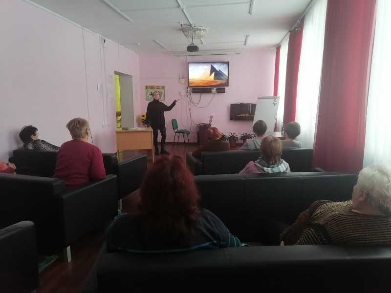 В Отделении дневного пребывания прошла научно-познавательная программа «Семь чудес света». Участники встречи познакомились с шедеврами архитектуры древности: пирамидой Хеопса, висячими садами Семирамиды, Статуей Зевса в Олимпии, храмом Артемиды в Эфесе, мавзолеем в Галикарнасе, статуей Колосса Родосского, Александрийским маяком. Встреча была насыщена историческими фактами и вызвала большой интерес.