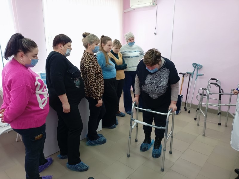 Помощники по уходу ознакомились с техническими средствами реабилитации, которые применяются в уходе за маломобильными гражданами, и с правилами их использования.