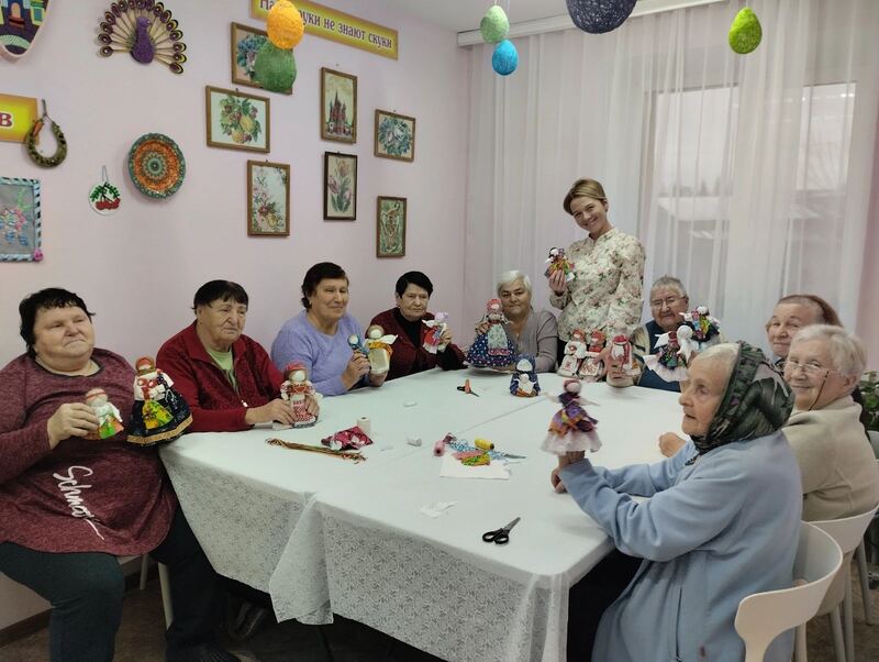 Для жителей отделения Спецжилдома состоялась познавательно – развлекательная программа с элементами мастер класса «Все на земле от материнских рук». Эта тема нетленна, как нетленна любовь и вечная память о самом родном и близком человеке – матери. От материнского горячего сердца, как пламя от факела к факелу, передан нам огонь жизни. Во время проведения мероприятия присутствующие начинали знакомство с циклом изготовления народных кукол «Куклы женской судьбы». В древности славянские тряпичные куклы изготавливали женщины. Объяснялось это тем, что с древнейших времён женщина хранила и передавала знания и навыки из поколения в поколение. Делала такие куколки женщина не бездумно, а эмоционально настроившись, истово веря в силу "сделанного". Ведь от качества её работы зависела судьба семьи, рода. Считалось, что при изготовлении обрядовых кукол недопустимо использовать колющие и режущие предметы, поэтому тряпочки и ниточки для изделия не резали, а рвали. Сегодня мы мастерили куклу Мамушка.