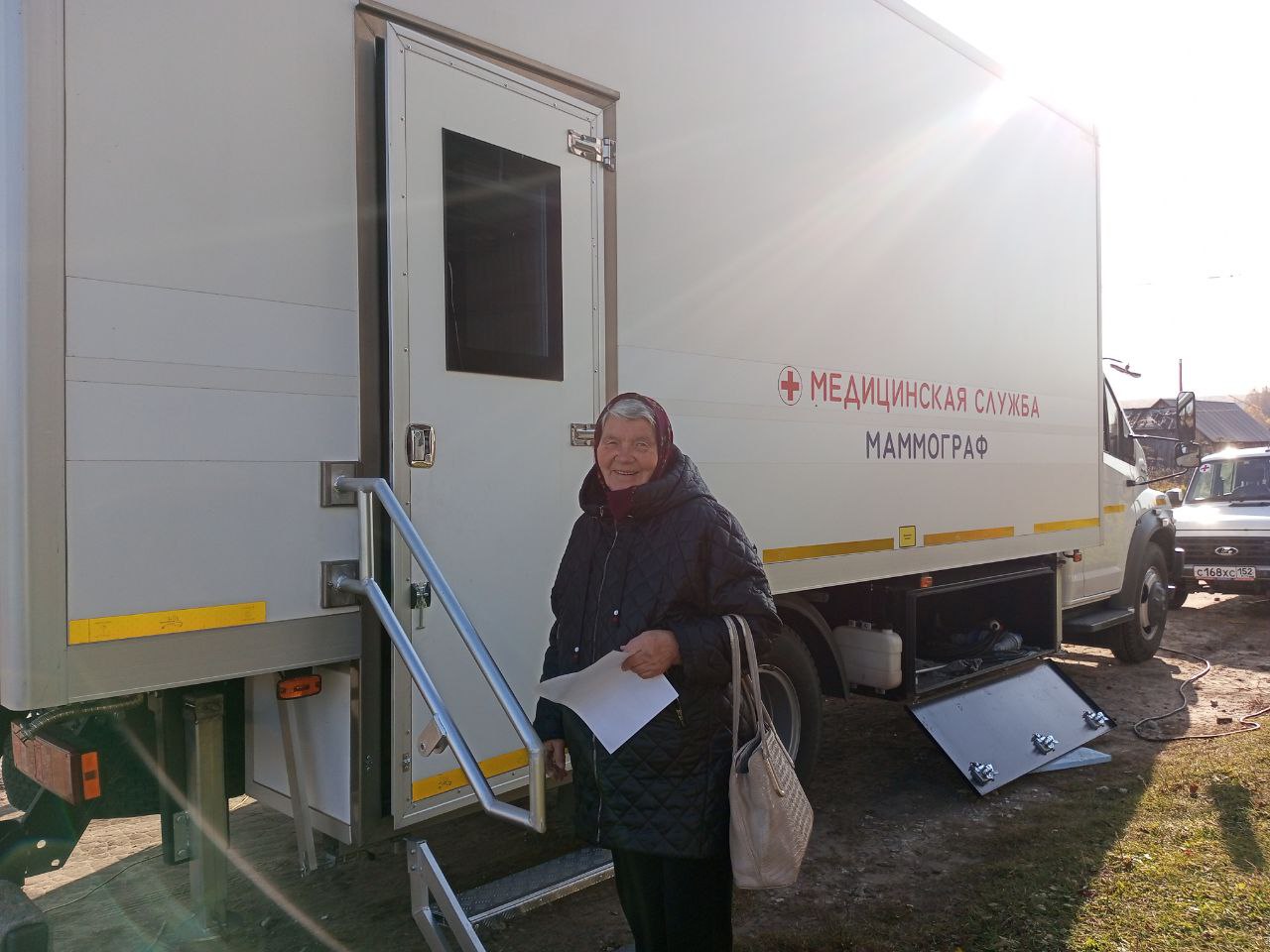 Социальные работники ГБУ "КЦСОН Краснобаковского муниципального округа" сопровождают обслуживаемых граждан для прохождения выездного обследования "Маммограф"