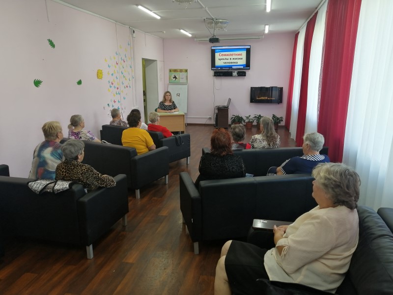 Наша жизнь представляет собой длинный путь. В молодости он кажется бесконечным. Однако, когда приходит закат жизни и большая часть этого пути уже пройдена, мы оглядываемся назад и осознаем, что годы пролетели, как один миг. Бернард Вербер описывает жизнь как череду различных циклов, каждый из которых имеет свои особенности в психическом и эмоциональном состоянии человека. Для обслуживаемых Отделения дневного пребывания психолог С.В. Алимова провела лекцию на тему: «Семилетние циклы по Бернарду Верберу». Получив знания о семилетних циклах, участники смогут понять, какие жизненные задачи и проблемы им предстоит решать в разные возрастные периоды. Возможно, кто-то сможет внести коррективы в свою жизнь или подготовиться к предстоящим изменениям. В результате жизнь обретет новый смысл, станет более счастливой и осознанной, а ее результаты будут более яркими, интересными и значимыми.