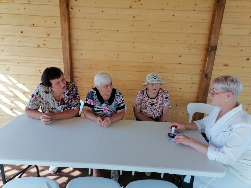 В отделении «Специализированный жилой дом для граждан пожилого возраста и инвалидов» продолжает свою работу «Школа диабета». Фельдшер отделения Сенникова Е.Н. провела занятие по формированию умений и навыков по самоконтролю за состоянием здоровья, оказанию первой доврачебной помощи в случаях обострений.